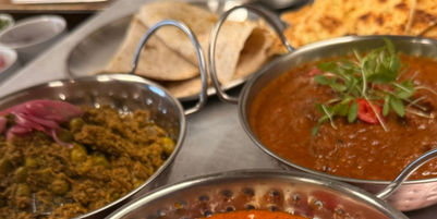 Enjoy a selection of curries chosen by our chef on one traditional Thali tray. Choose from either a meat, veggie/pescetarian or vegan thali. Comes with rice and Half Garlic Naan bread.